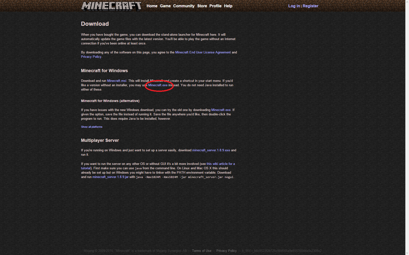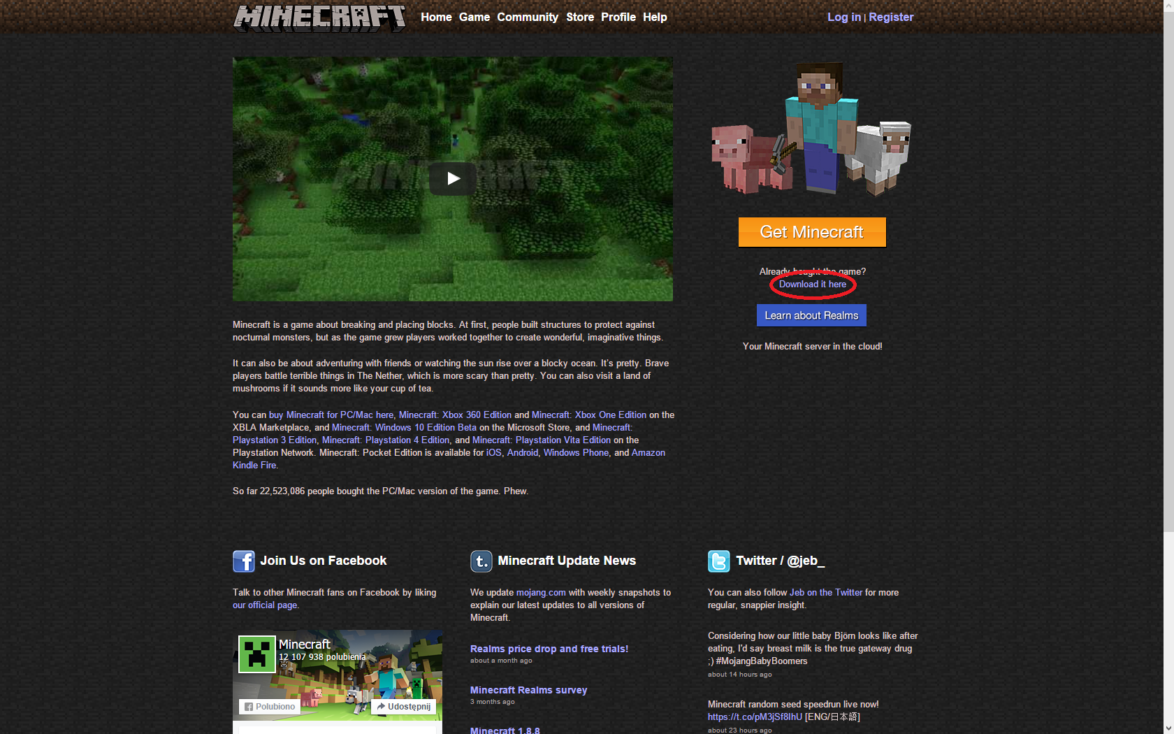 Skąd pobrać? Dostępnych opcji mamy wiele, lecz ja pokaże tylko 2. Jedną z nich będzie z orginalnej strony https://minecraft.net. Następnie klikamy "Download it here"