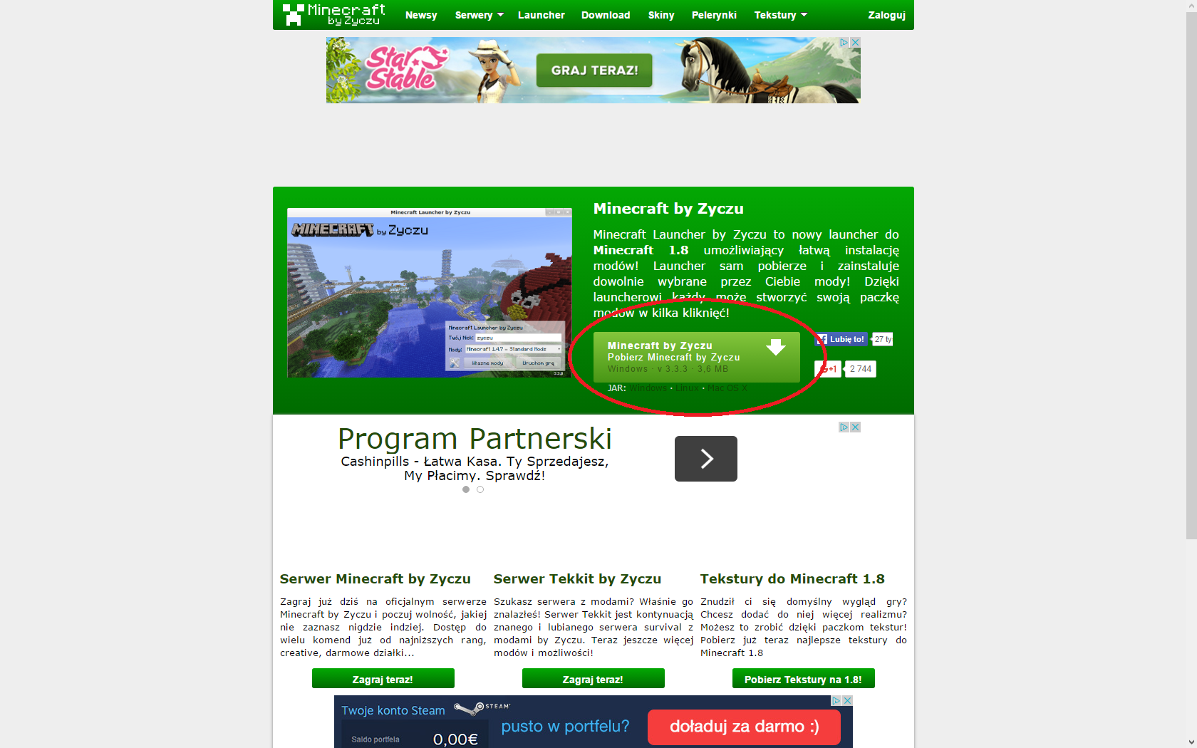 Jeżeli jednak chcemy tańszym kosztem wchodzimy na stronę http://minecraft.zyczu.pl. Klikamu w "Pobierz minecraft by zyczu"